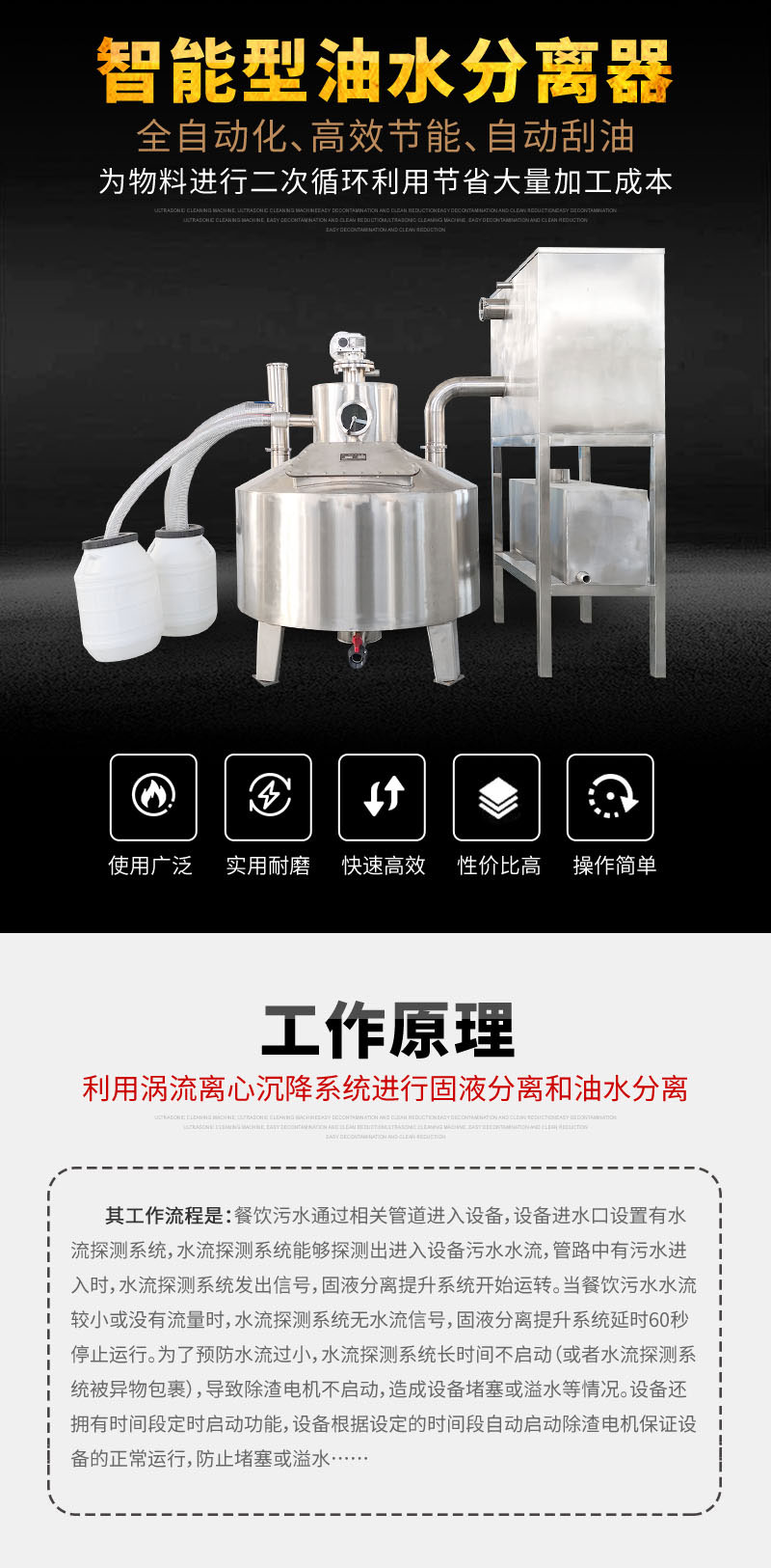 5、自動油水分離功能,渦流離心分離技術(shù):先進(jìn)渦流離心技術(shù),快速油/水分子雙向分離;