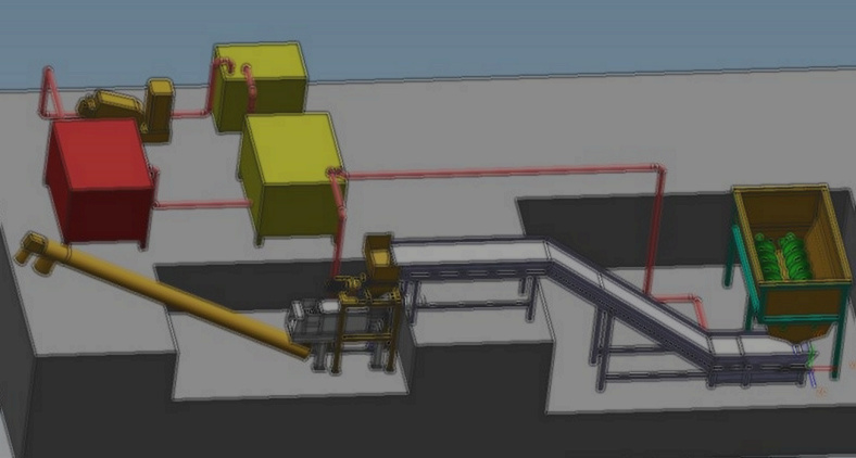 尾菜來料后進入集料箱緩存,然后經(jīng)底部螺旋輸送至鏈板平臺;鏈板輸送機設(shè)計為“Z”型,后端作為人工分選平臺,中間設(shè)備自動除鐵器,去除尾菜垃圾中的鐵制品;經(jīng)過分選的尾菜垃圾隨后進入粉碎擠壓一體機進行減量。經(jīng)過擠壓后的固體垃圾進入發(fā)酵倉進行發(fā)酵,用作有機肥;液體進入收集池中緩存。收集池中的液體隨后泵入氣浮機,去除大量懸浮物,氣浮后的浮渣進入疊螺機,污水則進入地埋一體化設(shè)備,*后達標(biāo)排放。